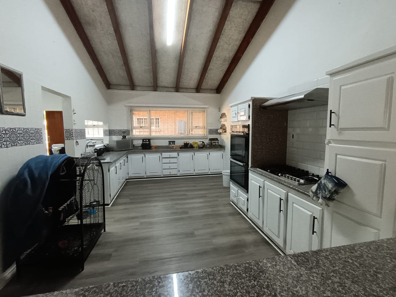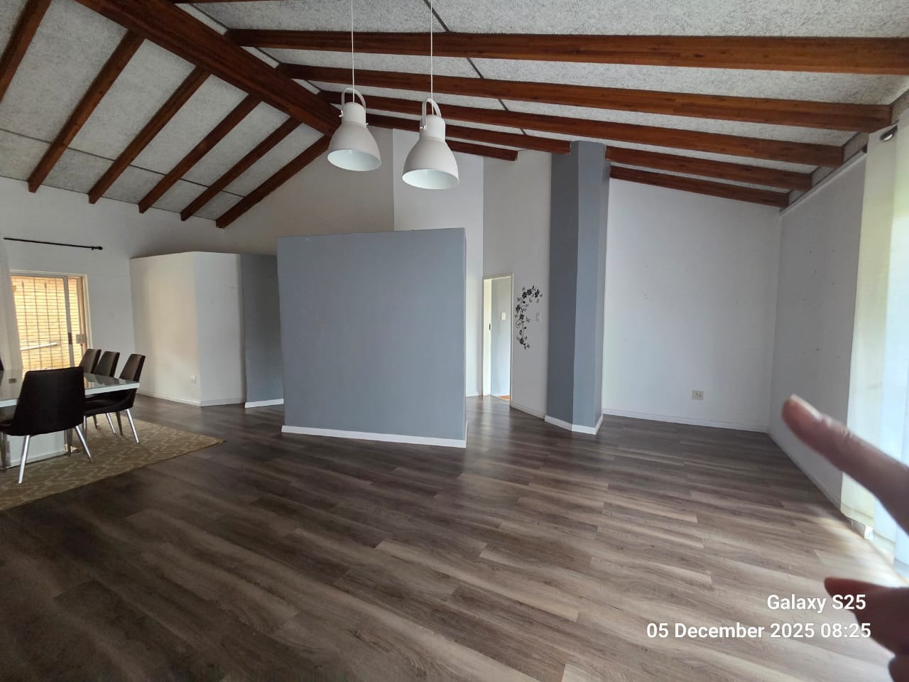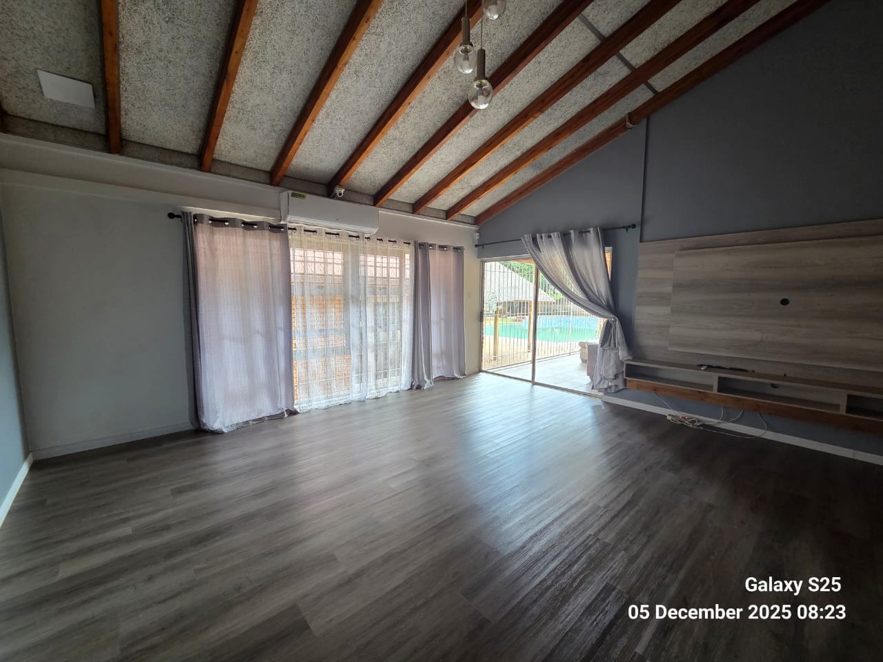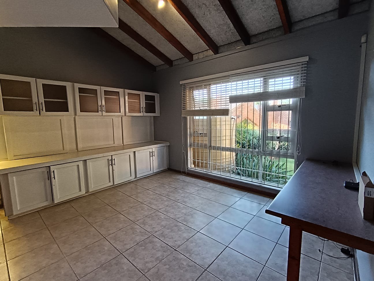 Discover this inviting family home located in the heart of Carletonville Central, offering a blend of spacious living and outdoor entertainment. The property immediately impresses with its established garden and brick construction, providing a welcoming kerb appeal. Inside, the residence boasts an open-plan design, highlighted by high vaulted ceilings with exposed wooden beams and modern laminate flooring, creating an airy and contemporary atmosphere. The layout includes two comfortable lounges and a dedicated dining area, perfect for family gatherings and entertaining. The well-appointed kitchen features a convenient pantry, ensuring ample storage and functionality. With four generously sized bedrooms and three bathrooms, including one en-suite, this home caters to family comfort. An additional guest toilet and a dedicated study provide extra convenience and versatility for work or hobbies. The interiors are designed for practical living, offering a seamless flow between spaces. Step outside to a private oasis featuring a large swimming pool, ideal for relaxation and recreation. The separate thatched lapa and built-in braai area provide the perfect setting for outdoor entertaining, complemented by the mature, established garden. Parking is abundant with three garages and six additional open parking spaces, ensuring ample room for vehicles. Pets are welcome, making this a true family-friendly environment. Security is a top priority, with features such as 24-hour security, an alarm system, electric fencing, burglar bars, a security gate, CCTV, and an intercom system. The home also embraces sustainability with a solar geyser, solar panels, a battery inverter, and water tanks, contributing to energy efficiency and water resilience. Fibre connectivity is available, ensuring modern communication needs are met. Carletonville Central offers a convenient suburban lifestyle, providing access to local amenities and a sense of community. This property is an excellent opportunity for those seeking a secure, spacious, and well-equipped family home in a desirable location. Key Features: * 4 Bedrooms, 3 Bathrooms (1 En-suite) * 2 Lounges, 1 Dining Room * Large Swimming Pool & Thatched Lapa * 3 Garages & 6 Parking Spaces * Solar Panels, Inverter & Water Tanks * 24-Hour Security, Alarm & CCTV * Fibre Connectivity * Built-in Braai & Established Garden * Dedicated Study & Pantry * Pets Allowed