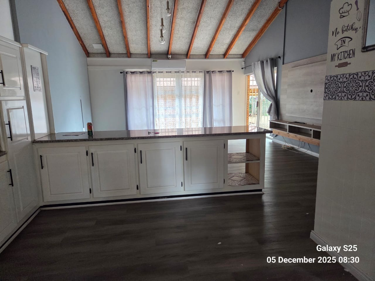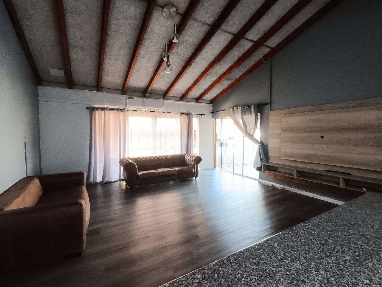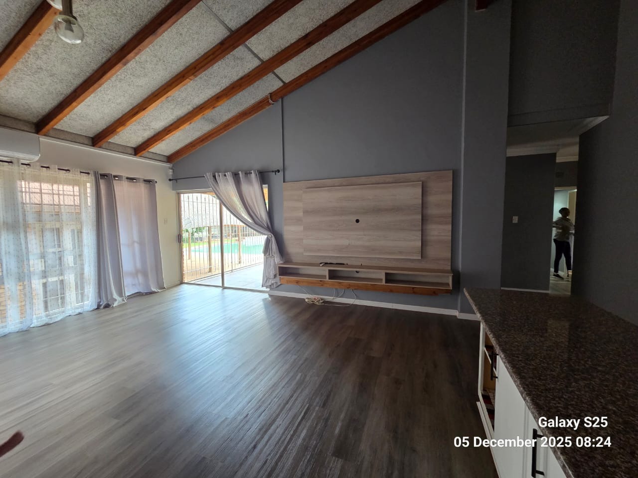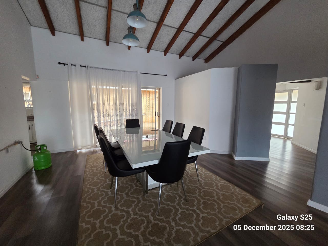 Discover this inviting family home located in the heart of Carletonville Central, offering a blend of spacious living and outdoor entertainment. The property immediately impresses with its established garden and brick construction, providing a welcoming kerb appeal. Inside, the residence boasts an open-plan design, highlighted by high vaulted ceilings with exposed wooden beams and modern laminate flooring, creating an airy and contemporary atmosphere. The layout includes two comfortable lounges and a dedicated dining area, perfect for family gatherings and entertaining. The well-appointed kitchen features a convenient pantry, ensuring ample storage and functionality. With four generously sized bedrooms and three bathrooms, including one en-suite, this home caters to family comfort. An additional guest toilet and a dedicated study provide extra convenience and versatility for work or hobbies. The interiors are designed for practical living, offering a seamless flow between spaces. Step outside to a private oasis featuring a large swimming pool, ideal for relaxation and recreation. The separate thatched lapa and built-in braai area provide the perfect setting for outdoor entertaining, complemented by the mature, established garden. Parking is abundant with three garages and six additional open parking spaces, ensuring ample room for vehicles. Pets are welcome, making this a true family-friendly environment. Security is a top priority, with features such as 24-hour security, an alarm system, electric fencing, burglar bars, a security gate, CCTV, and an intercom system. The home also embraces sustainability with a solar geyser, solar panels, a battery inverter, and water tanks, contributing to energy efficiency and water resilience. Fibre connectivity is available, ensuring modern communication needs are met. Carletonville Central offers a convenient suburban lifestyle, providing access to local amenities and a sense of community. This property is an excellent opportunity for those seeking a secure, spacious, and well-equipped family home in a desirable location. Key Features: * 4 Bedrooms, 3 Bathrooms (1 En-suite) * 2 Lounges, 1 Dining Room * Large Swimming Pool & Thatched Lapa * 3 Garages & 6 Parking Spaces * Solar Panels, Inverter & Water Tanks * 24-Hour Security, Alarm & CCTV * Fibre Connectivity * Built-in Braai & Established Garden * Dedicated Study & Pantry * Pets Allowed