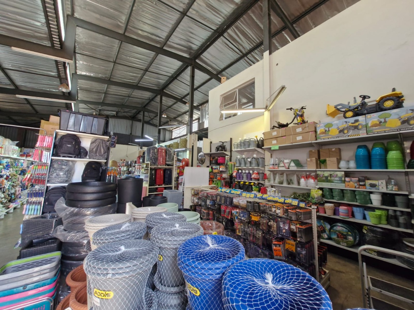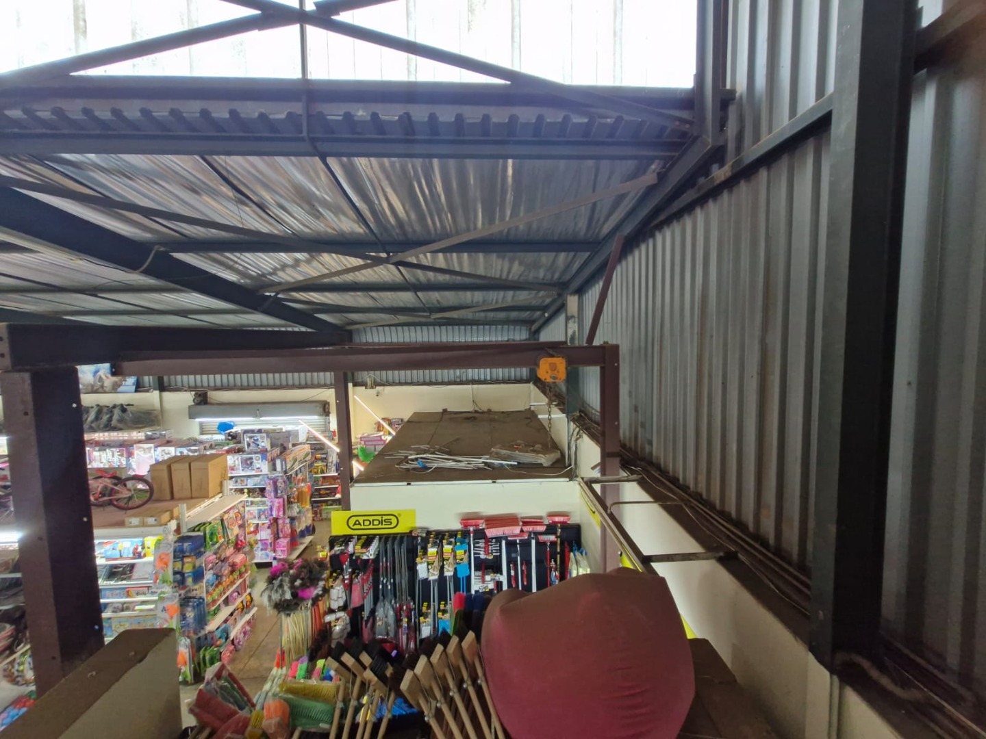 This versatile commercial property, ideally situated in Fochville, presents an exceptional opportunity for businesses seeking a prominent location. Boasting an erf size of 991 sqm, this mixed-use building offers significant potential for retail, wholesale, or light industrial operations. The exterior features a robust brick and corrugated metal facade, complemented by a newly installed dark grey roof and a prominent street-facing presence, ensuring excellent visibility for your brand. Step inside to discover an expansive, open-plan layout characterized by high ceilings with exposed metal trusses and ample natural light filtering through translucent roof panels. The ground floor provides a substantial retail or wholesale area, currently configured for extensive product display with numerous shelving units. A valuable mezzanine level offers additional space, perfect for storage, administrative offices, or further retail expansion, enhancing the property's operational flexibility. The property includes four well-appointed bathrooms, catering to staff and customer needs. Security is a key feature, with visible window bars, security gates at the main entrance, and a fenced perimeter providing peace of mind. The property benefits from dedicated shaded parking bays, a crucial amenity for both staff and customers, ensuring convenient access. Its strategic location in Fochville, a well-established South African city, offers a solid foundation for business growth and accessibility. This commercial offering is a strategic investment, providing a functional and adaptable space ready to accommodate diverse business models. The blank sign space on the facade allows for immediate branding, making it an attractive prospect for entrepreneurs and investors alike. Key Features: * 991 sqm erf size in Fochville * High visibility street frontage * Expansive open-plan retail/warehouse space * Valuable mezzanine level for offices/storage * Four bathrooms * Dedicated shaded parking bays * Enhanced security with gates and fencing * Adaptable for various commercial uses