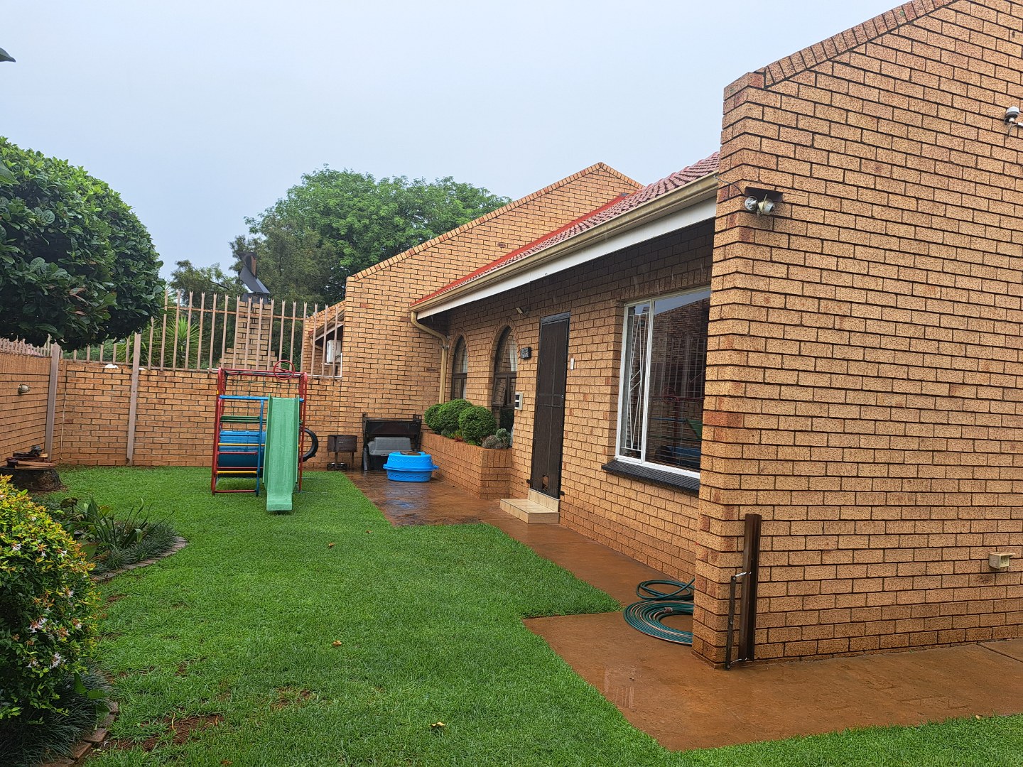 This inviting 92 sqm home, situated in the established suburban area of Carletonville Central, South Africa, offers comfortable living with modern touches. The interior features a welcoming living room with a striking dark teal accent wall, a wall-mounted TV, and ample seating. Arched doorways enhance the open feel, complemented by tiled flooring and a ceiling fan. A versatile enclosed patio, currently a home office, provides abundant natural light through multiple windows and showcases charming exposed brick walls, ideal for a sunroom or study. The contemporary kitchen is equipped with stylish navy blue cabinetry, contrasting white countertops, and an integrated gas hob and oven. A double sink and a distinctive mosaic tile backsplash add to its appeal, while ample storage and space for a washing machine ensure practicality. Security features, including burglar bars on windows and a security gate on the exterior door, provide peace of mind. The residence comprises two comfortable bedrooms and one well-appointed bathroom. One bedroom features modern dark grey walls, wood-look laminate flooring, and extensive built-in wardrobes. The second bedroom offers a cozy ambiance with a contemporary grey padded headboard, coordinated bedding, and practical laminate wood flooring, with windows fitted for light control and privacy. Externally, the property includes a double garage and an additional parking space. Direct access from a living area to a small outdoor garden area offers a private space for relaxation. This home combines functional design with appealing aesthetics. Key Features: * Two Bedrooms * One Bathroom * Modern Navy Blue Kitchen * Integrated Gas Hob & Oven * Double Garage * Versatile Enclosed Patio * Tiled & Laminate Flooring * Security Gates & Bars * Suburban Carletonville Central