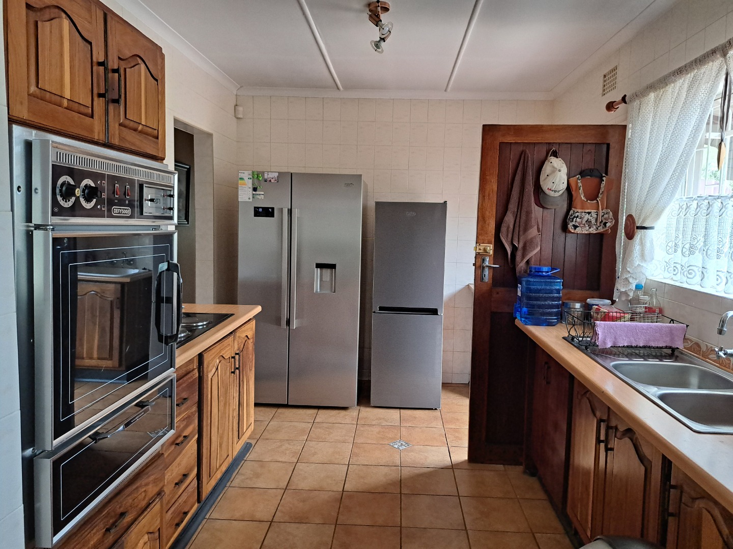 Discover this inviting 3-bedroom, 1-bathroom family home situated in the established suburb of Carletonville Central, Carletonville, South Africa. Boasting an erf size of 831.00 sqm, this property offers generous living spaces designed for comfort and everyday functionality. The interior features two distinct lounges, providing ample room for relaxation and entertainment. These areas are characterized by durable tiled flooring, charming exposed brick accent walls, and large windows fitted with blinds and drapes, ensuring abundant natural light. For climate control, the living spaces are equipped with both ceiling fans and air conditioning, enhancing comfort throughout the seasons. A dedicated entertainment setup with a TV console is also present, catering to modern lifestyle needs. The heart of the home, the kitchen, presents a traditional aesthetic with extensive wooden cabinetry and ample counter space, ideal for culinary enthusiasts. It includes a built-in double oven and stovetop, a double basin sink, and is complemented by two modern stainless steel refrigerators. Tiled floors and walls ensure easy maintenance. An integrated breakfast bar offers a convenient spot for informal dining. The three comfortable bedrooms share a well-appointed bathroom, providing practical accommodation for a family. Externally, the property benefits from a secure entrance featuring a security gate, contributing to peace of mind. With two garages, there is secure parking for vehicles, alongside additional space on the generous erf. The property's layout and features make it a practical choice for those seeking a comfortable and secure residence. The suburb offers convenient access to local amenities and services within the city of Carletonville, providing a balanced lifestyle that combines suburban tranquility with necessary urban conveniences. Key Features: * 3 Bedrooms * 1 Bathroom * 2 Lounges * 1 Kitchen * 2 Garages * 831 sqm Erf Size * Tiled Flooring * Exposed Brick Accents * Air Conditioning & Ceiling Fans * Security Gate