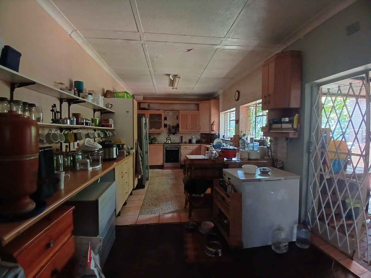 This inviting 3-bedroom, 1-bathroom family home, set on a generous 763 sqm erf in Carletonville Central, offers a blend of comfort and potential. The property immediately presents with a distinctive red corrugated roof and a light-toned exterior, complemented by a large, established garden featuring mature trees and a substantial front lawn. Notably, the inclusion of solar panels enhances energy efficiency, providing a sustainable living solution. While the exterior boasts curb appeal, some areas offer an opportunity for personal touches and maintenance to truly shine. Inside, the residence features a spacious lounge with warm parquet flooring and ample natural light, creating a welcoming atmosphere. A dedicated dining room provides space for family meals. The functional kitchen, equipped with extensive storage cabinetry and open shelving, benefits from good natural light and direct access to the outdoors via a security sliding door. This area, along with other interior spaces, offers a canvas for modern updates to align with contemporary tastes. The home comprises three comfortable bedrooms, each offering natural light and practical built-in cupboards for storage. The single bathroom serves the household efficiently. Security is a key feature, with an alarm system, burglar bars on windows, and a security gate providing peace of mind. Parking is well-catered for with a single garage and additional parking space available. This property provides convenient access to local amenities and community facilities, making it an ideal choice for families seeking a well-located home with room to grow. Key Features: * 3 Bedrooms, 1 Bathroom * Spacious 763 sqm Erf * Solar Panels for Energy Efficiency * Large, Established Garden * Single Garage & Additional Parking * Alarm System, Burglar Bars, Security Gate * Dedicated Lounge and Dining Room * Functional Kitchen with Outdoor Access
