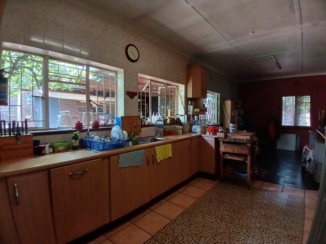 This inviting 3-bedroom, 1-bathroom family home, set on a generous 763 sqm erf in Carletonville Central, offers a blend of comfort and potential. The property immediately presents with a distinctive red corrugated roof and a light-toned exterior, complemented by a large, established garden featuring mature trees and a substantial front lawn. Notably, the inclusion of solar panels enhances energy efficiency, providing a sustainable living solution. While the exterior boasts curb appeal, some areas offer an opportunity for personal touches and maintenance to truly shine. Inside, the residence features a spacious lounge with warm parquet flooring and ample natural light, creating a welcoming atmosphere. A dedicated dining room provides space for family meals. The functional kitchen, equipped with extensive storage cabinetry and open shelving, benefits from good natural light and direct access to the outdoors via a security sliding door. This area, along with other interior spaces, offers a canvas for modern updates to align with contemporary tastes. The home comprises three comfortable bedrooms, each offering natural light and practical built-in cupboards for storage. The single bathroom serves the household efficiently. Security is a key feature, with an alarm system, burglar bars on windows, and a security gate providing peace of mind. Parking is well-catered for with a single garage and additional parking space available. This property provides convenient access to local amenities and community facilities, making it an ideal choice for families seeking a well-located home with room to grow. Key Features: * 3 Bedrooms, 1 Bathroom * Spacious 763 sqm Erf * Solar Panels for Energy Efficiency * Large, Established Garden * Single Garage & Additional Parking * Alarm System, Burglar Bars, Security Gate * Dedicated Lounge and Dining Room * Functional Kitchen with Outdoor Access