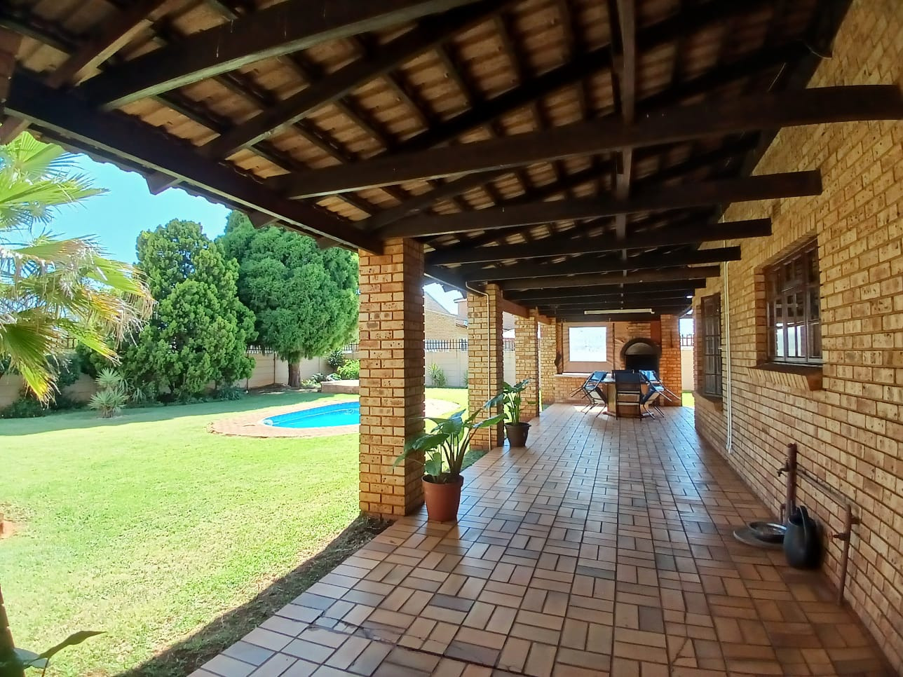 Step outside to discover a fantastic outdoor living space. A spacious covered patio with a built-in braai area is perfect for entertaining, overlooking a private swimming pool and a well-maintained garden. The property also boasts a double garage and four additional parking spaces, ensuring ample secure parking for residents and guests. Pets are allowed, making this an ideal home for animal lovers.