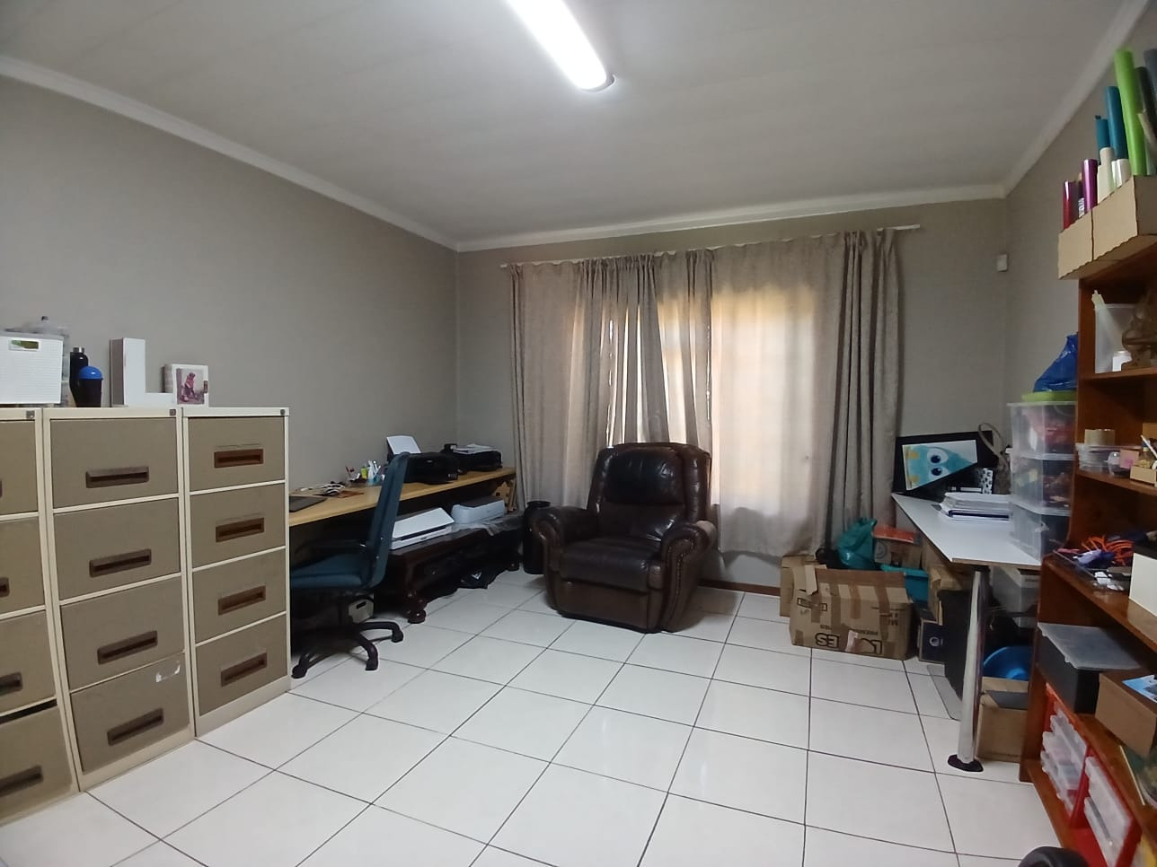 Security is well-addressed with an alarm system, CCTV, and burglar bars on windows, providing peace of mind. Located in this central area, the home offers convenient access to local amenities and a suburban lifestyle.