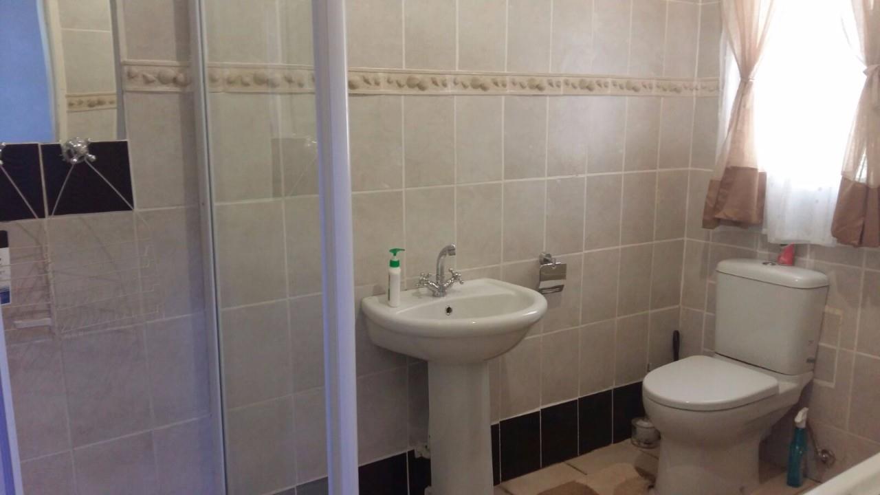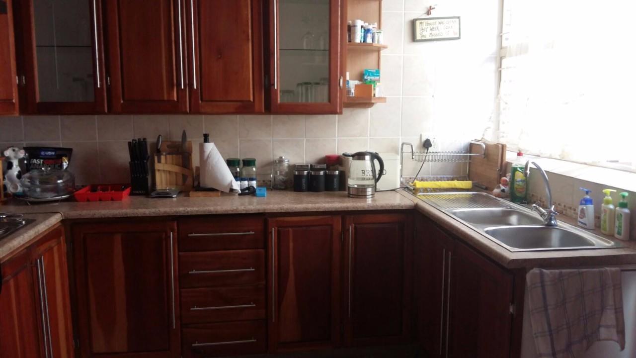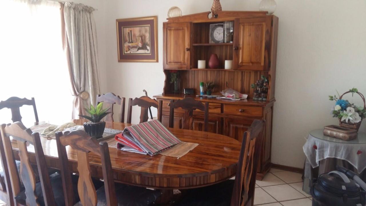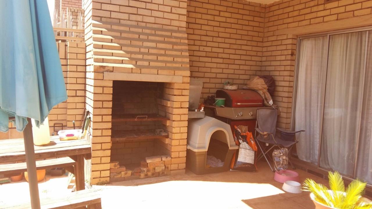 This inviting 4-bedroom, 2-bathroom residence is situated within a secure complex, offering a comfortable family lifestyle. The property presents a welcoming facade with paving and a garden, ensuring a pleasant first impression for potential homeowners. Step inside to discover a well-appointed interior designed for practical living. The home features a dedicated dining room, brightened by a large window, and a comfortable lounge area, perfect for relaxation. An additional family TV room provides versatile space for entertainment. The functional kitchen boasts extensive wooden cabinetry, providing ample storage, complemented by light-colored countertops and a tiled backsplash. Integrated modern appliances, including a built-in oven and microwave, enhance its utility for daily cooking. Four generously sized bedrooms offer private retreats, with built-in wardrobes in some, ensuring sufficient storage. The property includes two full bathrooms, one of which is an en-suite, featuring both a bathtub and a separate shower enclosure, catering to diverse preferences. Enjoy outdoor living on the private patio, complete with a built-in brick braai, ideal for entertaining guests. The property benefits from a single garage and a covered parking bay. Security is enhanced with an access gate and burglar bars, providing peace of mind within the complex environment. Key Features: * 4 Bedrooms, 2 Bathrooms (1 en-suite) * Spacious Lounge and Family TV Room * Functional Kitchen with Integrated Appliances * Private Patio with Built-in Braai * Single Garage and Covered Parking * Secure Complex Living with Access Gate * Laundry Facilities * Garden and Paved Areas