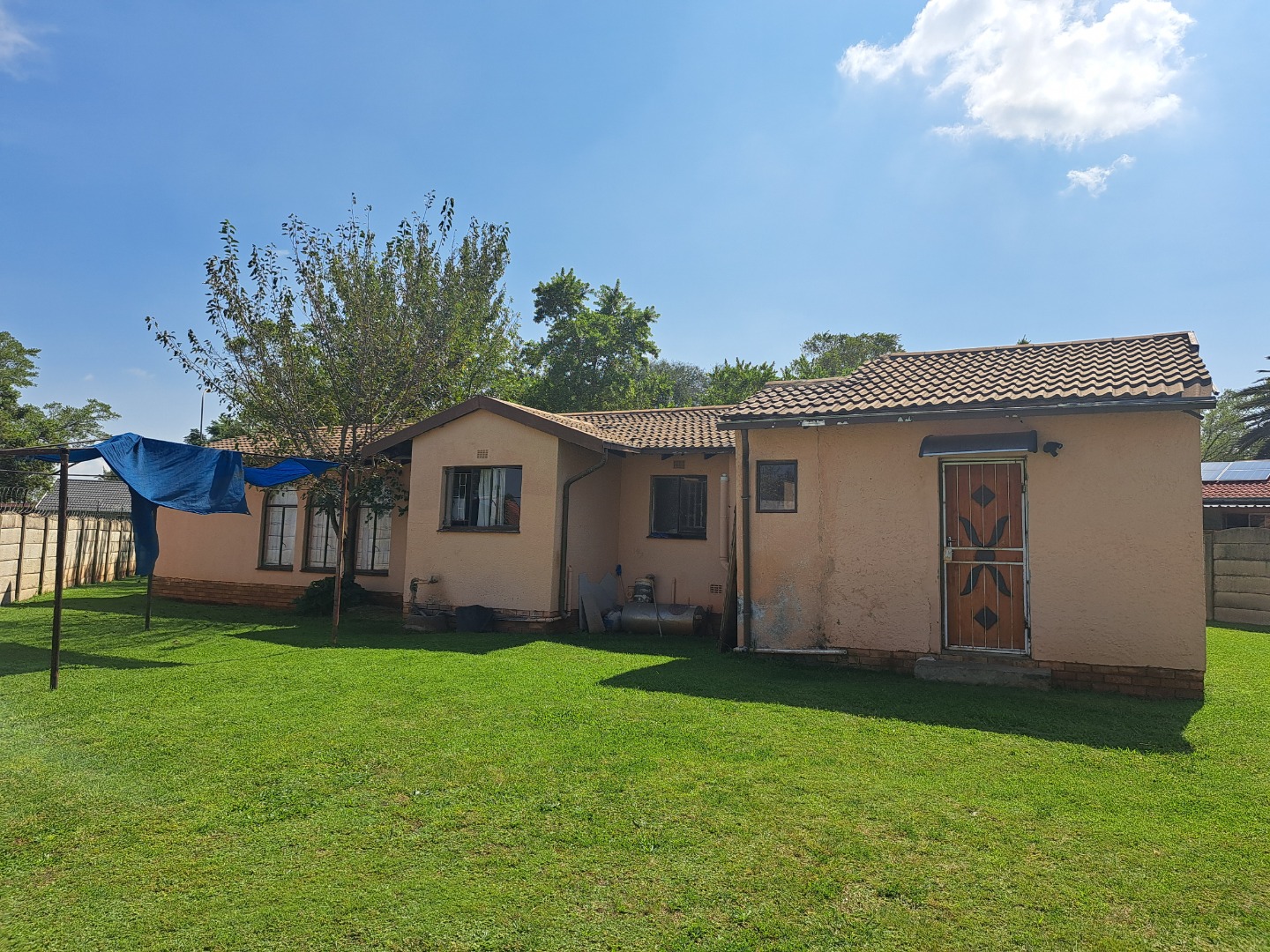 Set on a generous 1041 sqm stand, this residence offers ample outdoor space for various activities, gardening, or future expansion. The interior comprises three comfortable bedrooms, a well-appointed bathroom, a functional kitchen, a dedicated dining room, a welcoming lounge, and an additional family TV room, providing versatile living arrangements for a growing family. Practical features include staff quarters, a private garden, and outside toilets, enhancing the home's functionality.