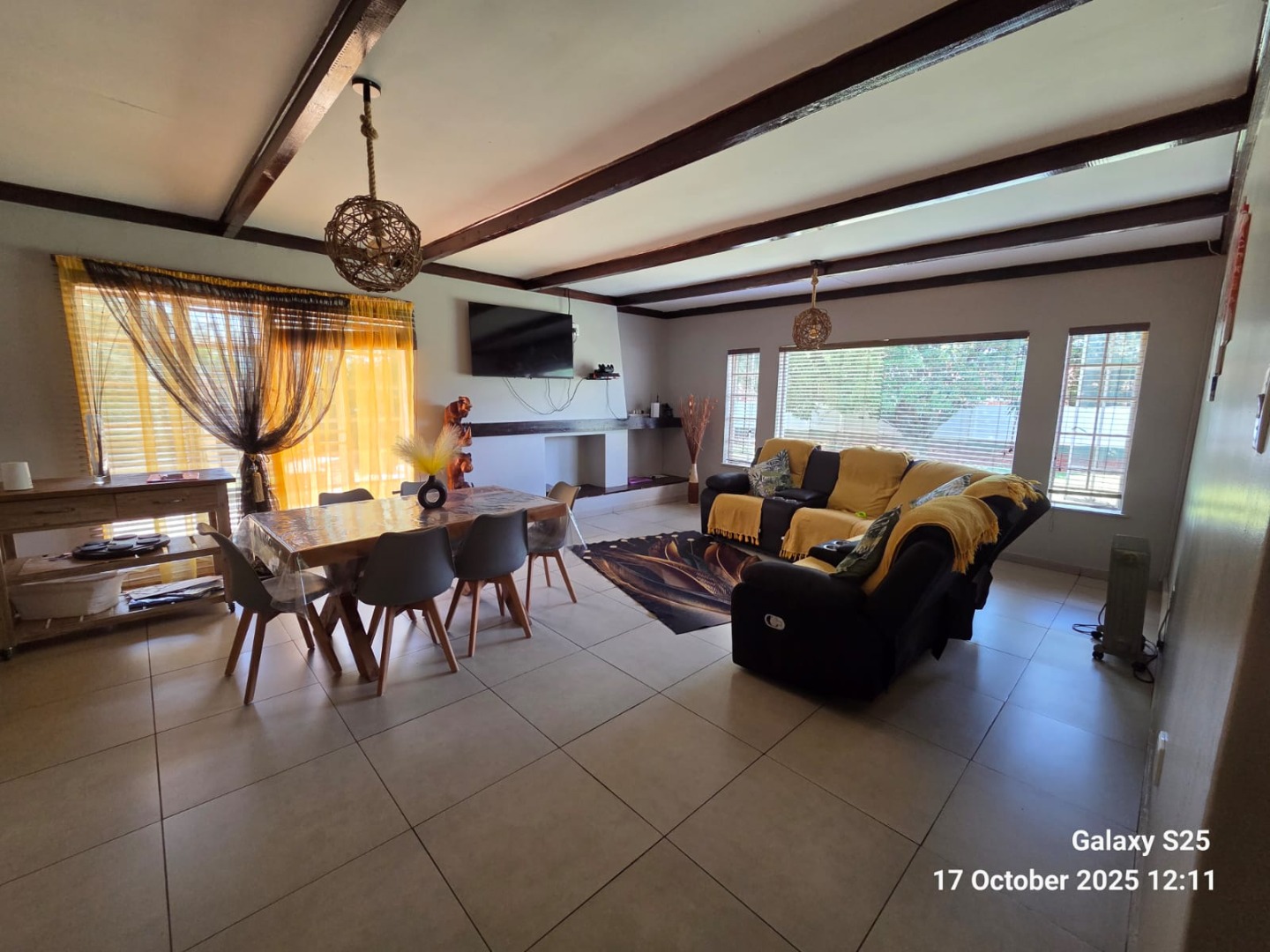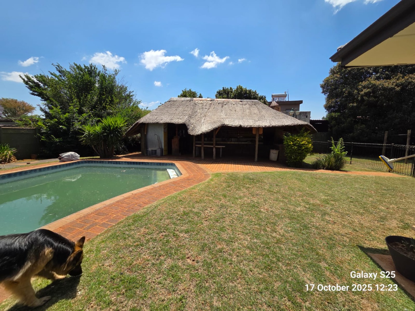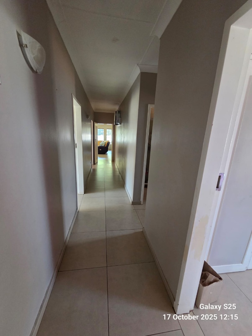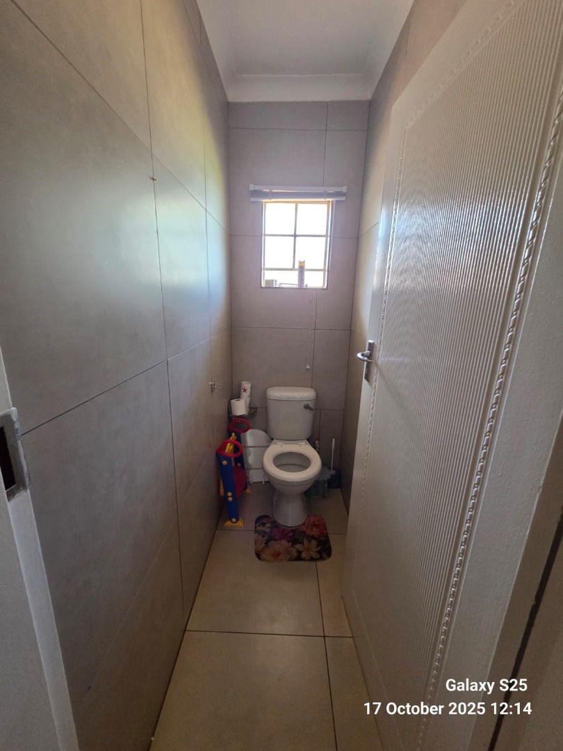 Step into this inviting four-bedroom home in Oberholzer, Carletonville, offering a comfortable and functional living experience. The spacious lounge, bathed in natural light from multiple windows, features charming exposed wooden ceiling beams and ample space for relaxation. Adjacent, the modern kitchen boasts dark wood cabinetry, granite-style countertops, an integrated hob, and a convenient breakfast nook, perfect for casual dining. Tiled floors throughout ensure easy maintenance and a cohesive flow. The residence comprises four well-proportioned bedrooms, providing comfortable private retreats. There are two bathrooms, including a luxurious ensuite. The main bathroom features a corner jetted tub and a double vanity with vessel sinks, while the second bathroom offers both a separate shower and a built-in bathtub. A dedicated guest toilet adds to the home's practicality. Ample built-in storage solutions are present, ensuring an organised living environment. Set on a generous 2138 sqm erf, the property offers a private garden and a refreshing swimming pool, ideal for outdoor enjoyment and entertaining. A lapa provides a shaded area for gatherings. Parking is well-catered for with two garages and two additional parking spaces, complemented by paving. For peace of mind, the home is equipped with an alarm system, electric fencing, and burglar bars, ensuring enhanced security. Pets are allowed, making this a perfect family home. Located in the established suburb of Oberholzer, this property offers convenient access to local amenities in Carletonville, providing a balanced lifestyle. Key Features: * 4 Bedrooms, 2 Bathrooms (1 Ensuite) * Spacious Lounge with Exposed Beams * Modern Kitchen with Granite-style Countertops * Swimming Pool & Lapa * Double Garage & 2 Additional Parkings * Alarm System, Electric Fencing, Burglar Bars * Generous 2138 sqm Erf * Pets Allowed