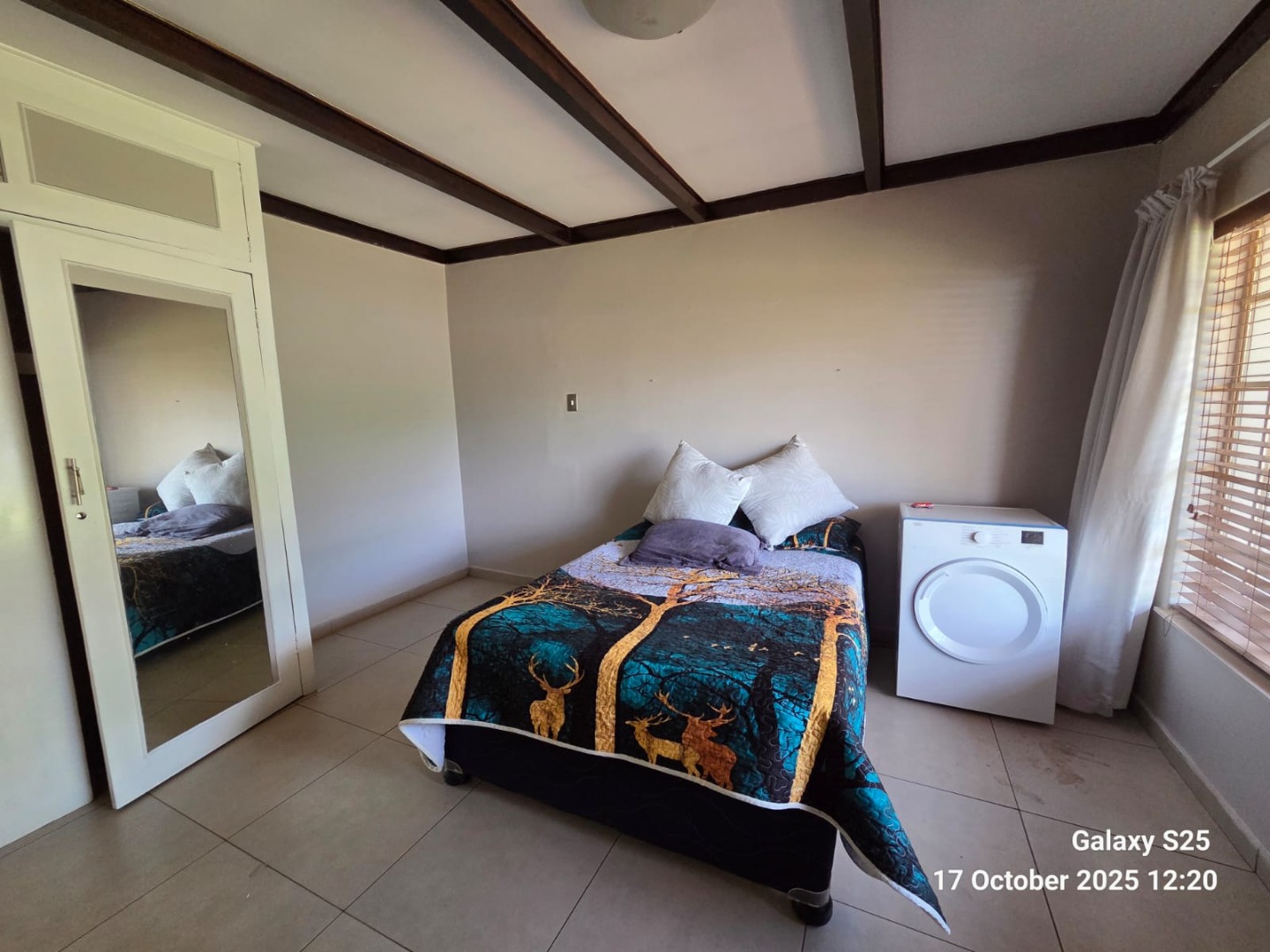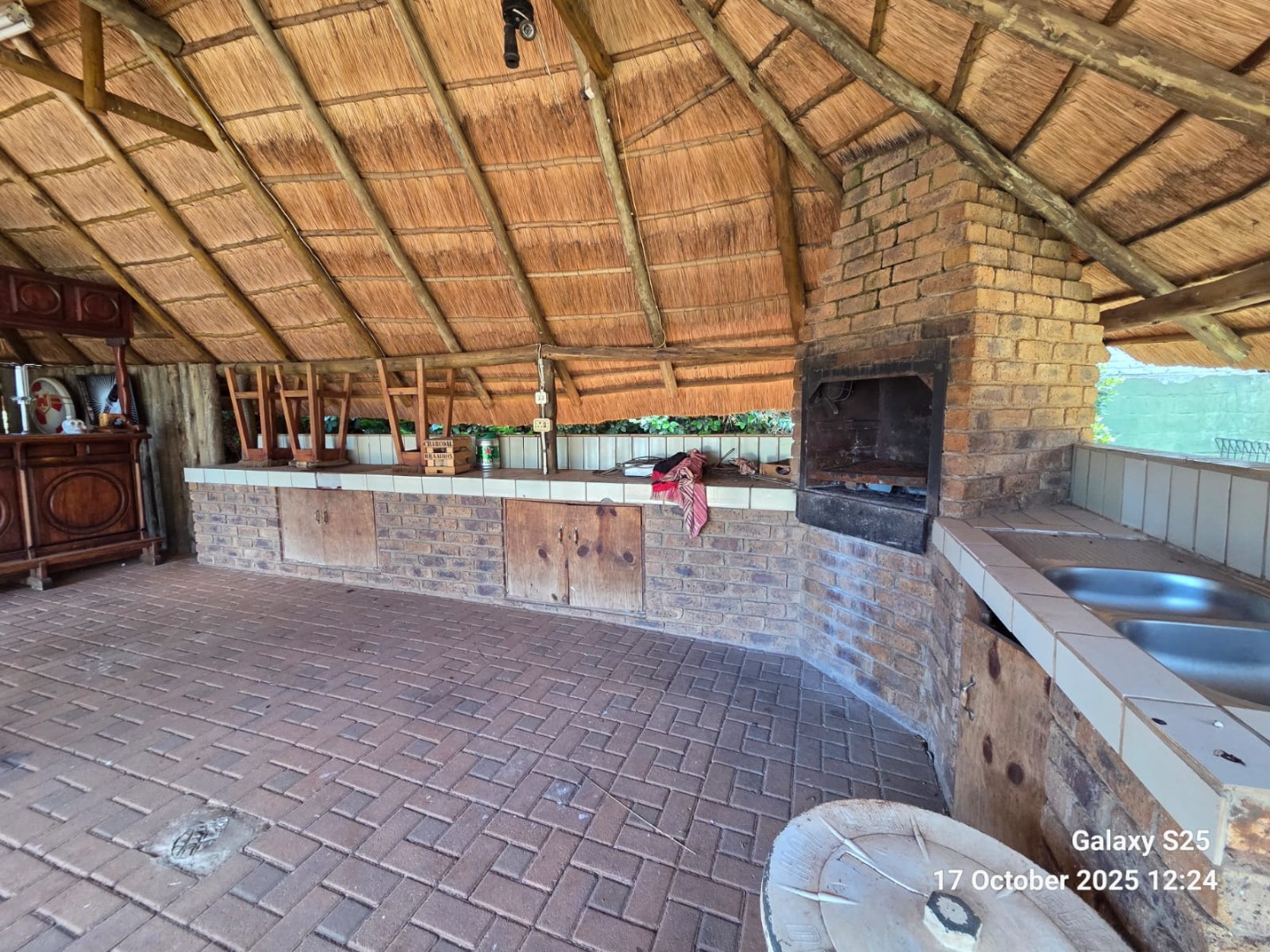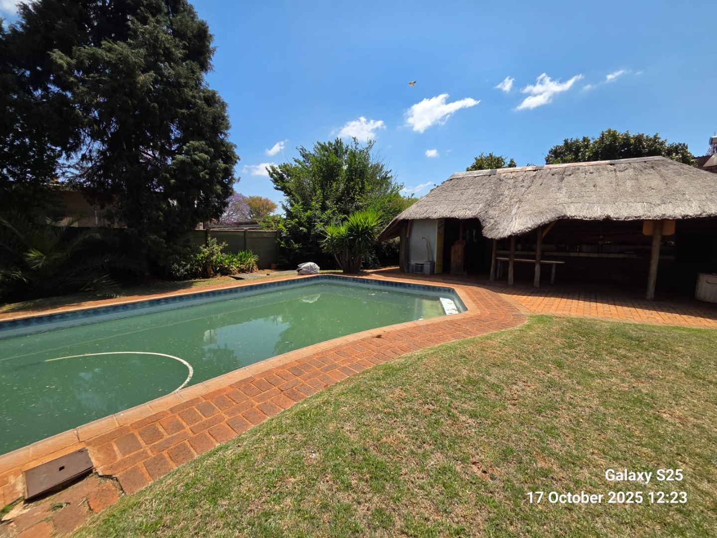 Step into this inviting four-bedroom home in Oberholzer, Carletonville, offering a comfortable and functional living experience. The spacious lounge, bathed in natural light from multiple windows, features charming exposed wooden ceiling beams and ample space for relaxation. Adjacent, the modern kitchen boasts dark wood cabinetry, granite-style countertops, an integrated hob, and a convenient breakfast nook, perfect for casual dining. Tiled floors throughout ensure easy maintenance and a cohesive flow. The residence comprises four well-proportioned bedrooms, providing comfortable private retreats. There are two bathrooms, including a luxurious ensuite. The main bathroom features a corner jetted tub and a double vanity with vessel sinks, while the second bathroom offers both a separate shower and a built-in bathtub. A dedicated guest toilet adds to the home's practicality. Ample built-in storage solutions are present, ensuring an organised living environment. Set on a generous 2138 sqm erf, the property offers a private garden and a refreshing swimming pool, ideal for outdoor enjoyment and entertaining. A lapa provides a shaded area for gatherings. Parking is well-catered for with two garages and two additional parking spaces, complemented by paving. For peace of mind, the home is equipped with an alarm system, electric fencing, and burglar bars, ensuring enhanced security. Pets are allowed, making this a perfect family home. Located in the established suburb of Oberholzer, this property offers convenient access to local amenities in Carletonville, providing a balanced lifestyle. Key Features: * 4 Bedrooms, 2 Bathrooms (1 Ensuite) * Spacious Lounge with Exposed Beams * Modern Kitchen with Granite-style Countertops * Swimming Pool & Lapa * Double Garage & 2 Additional Parkings * Alarm System, Electric Fencing, Burglar Bars * Generous 2138 sqm Erf * Pets Allowed