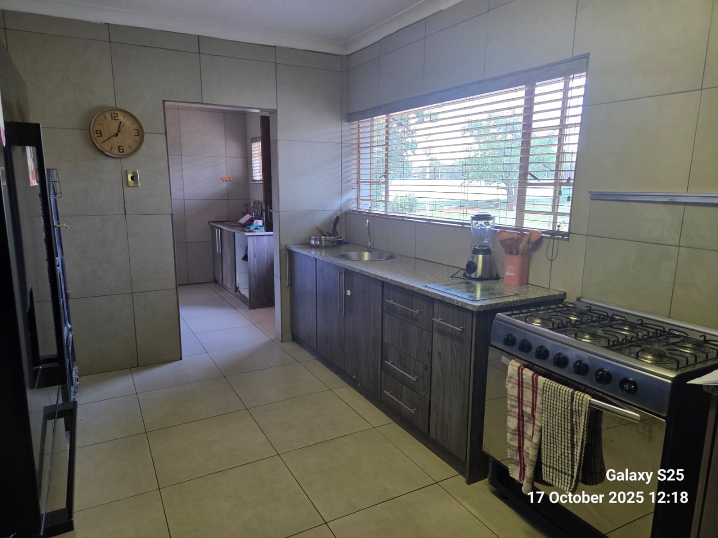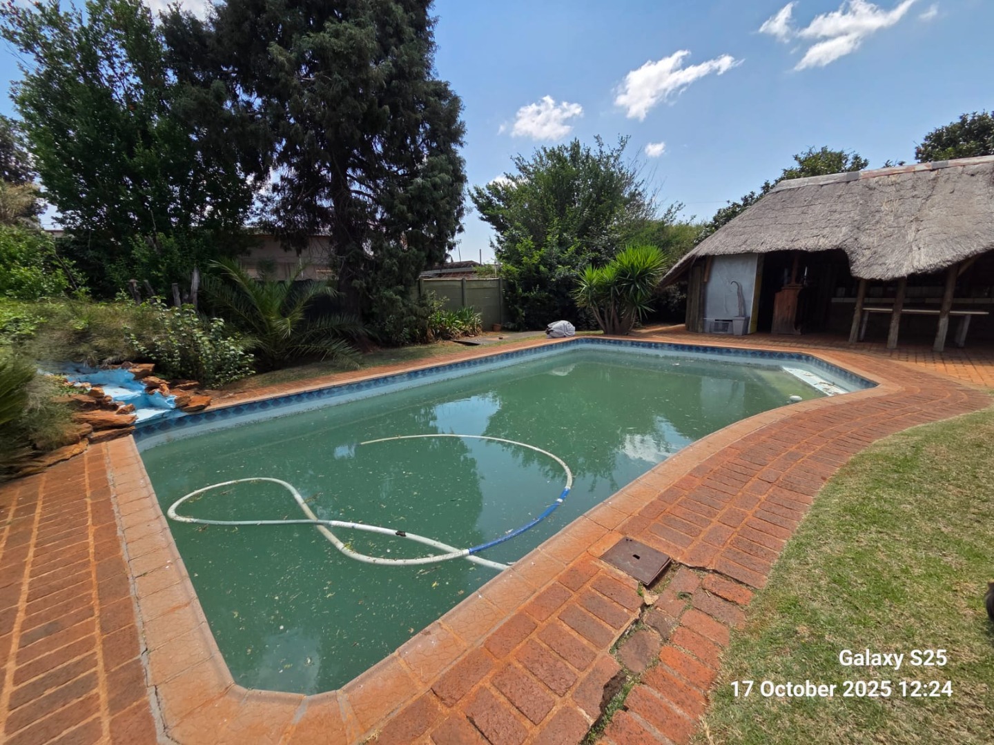 Step into this inviting four-bedroom home in Oberholzer, Carletonville, offering a comfortable and functional living experience. The spacious lounge, bathed in natural light from multiple windows, features charming exposed wooden ceiling beams and ample space for relaxation. Adjacent, the modern kitchen boasts dark wood cabinetry, granite-style countertops, an integrated hob, and a convenient breakfast nook, perfect for casual dining. Tiled floors throughout ensure easy maintenance and a cohesive flow. The residence comprises four well-proportioned bedrooms, providing comfortable private retreats. There are two bathrooms, including a luxurious ensuite. The main bathroom features a corner jetted tub and a double vanity with vessel sinks, while the second bathroom offers both a separate shower and a built-in bathtub. A dedicated guest toilet adds to the home's practicality. Ample built-in storage solutions are present, ensuring an organised living environment. Set on a generous 2138 sqm erf, the property offers a private garden and a refreshing swimming pool, ideal for outdoor enjoyment and entertaining. A lapa provides a shaded area for gatherings. Parking is well-catered for with two garages and two additional parking spaces, complemented by paving. For peace of mind, the home is equipped with an alarm system, electric fencing, and burglar bars, ensuring enhanced security. Pets are allowed, making this a perfect family home. Located in the established suburb of Oberholzer, this property offers convenient access to local amenities in Carletonville, providing a balanced lifestyle. Key Features: * 4 Bedrooms, 2 Bathrooms (1 Ensuite) * Spacious Lounge with Exposed Beams * Modern Kitchen with Granite-style Countertops * Swimming Pool & Lapa * Double Garage & 2 Additional Parkings * Alarm System, Electric Fencing, Burglar Bars * Generous 2138 sqm Erf * Pets Allowed