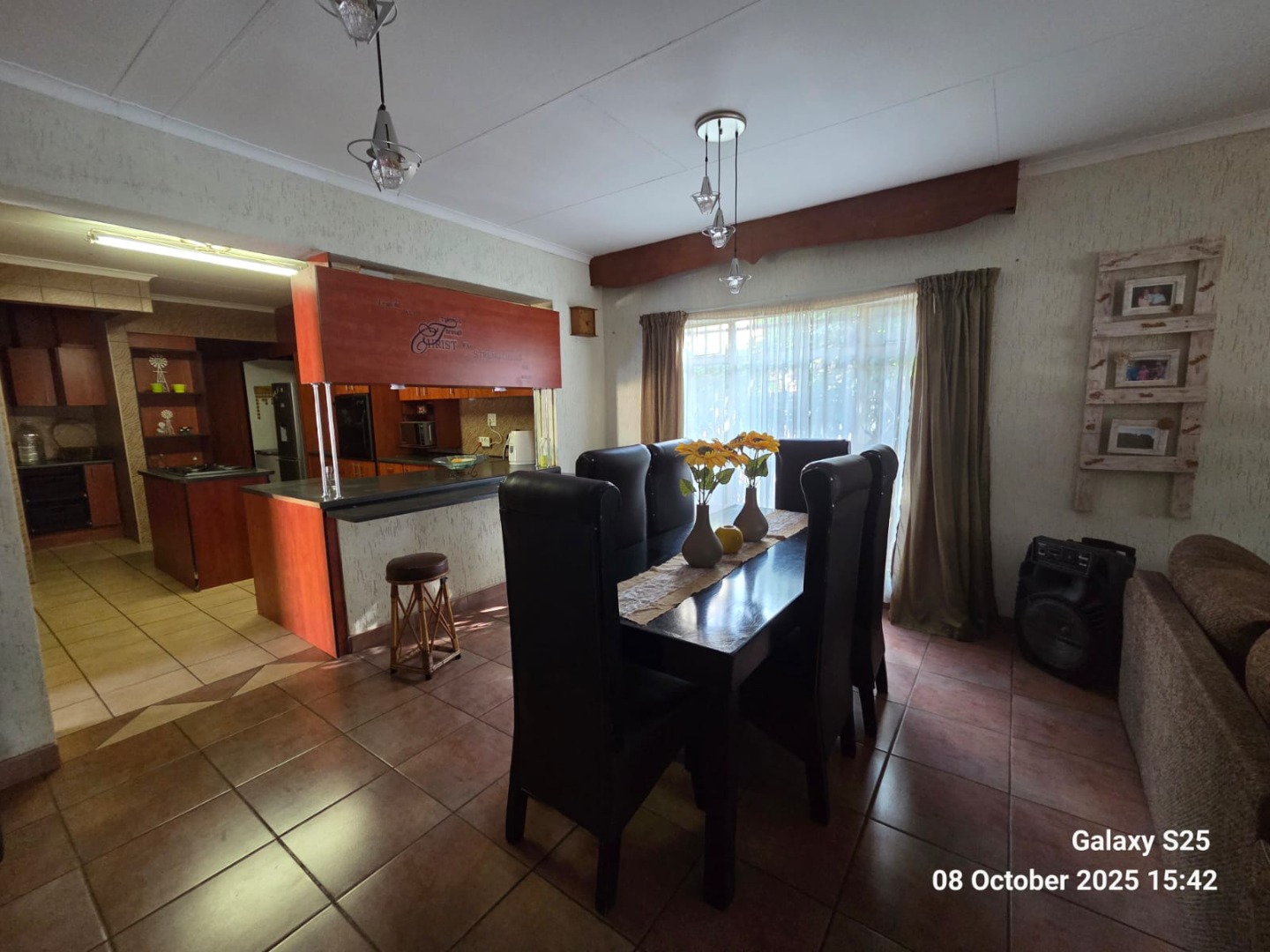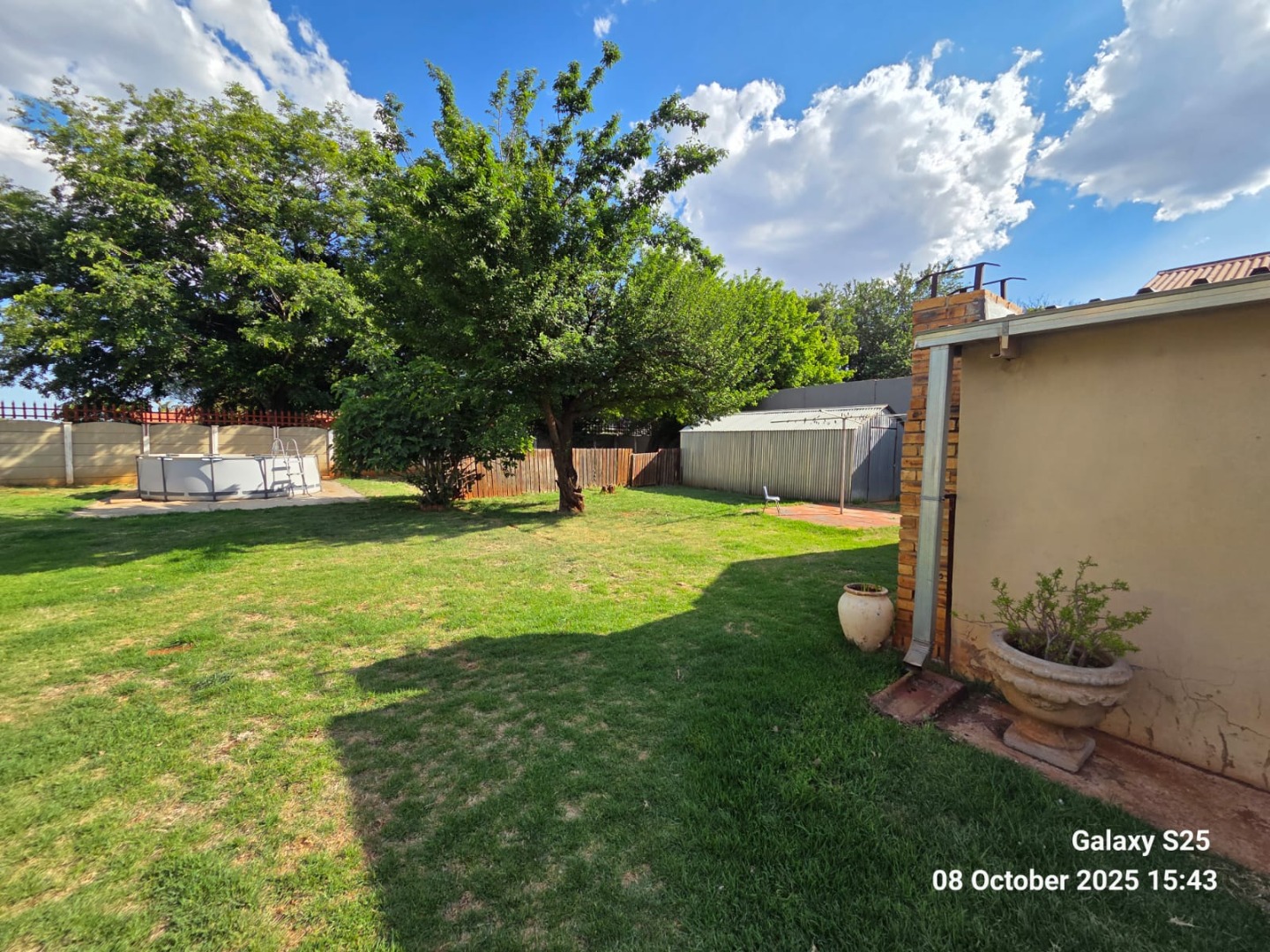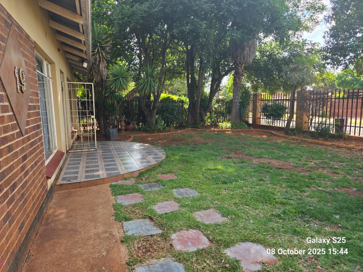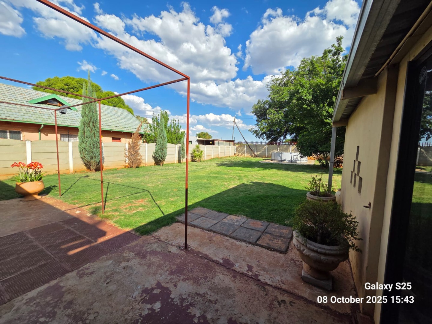 Discover this charming residential property located in the established suburb of Pretoriusrus, Carletonville, South Africa. This single-story home, set on a generous 1034 sqm erf, offers a blend of comfort and practicality for family living. The exterior presents a welcoming kerb appeal with a mix of brick and painted walls, complemented by an established garden featuring mature trees that provide ample shade and privacy. A tiled semi-circular patio area offers an inviting space for outdoor relaxation and entertaining.