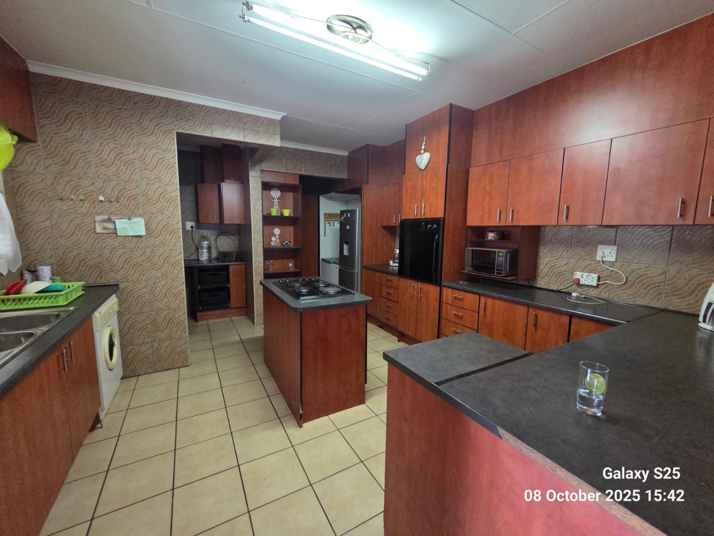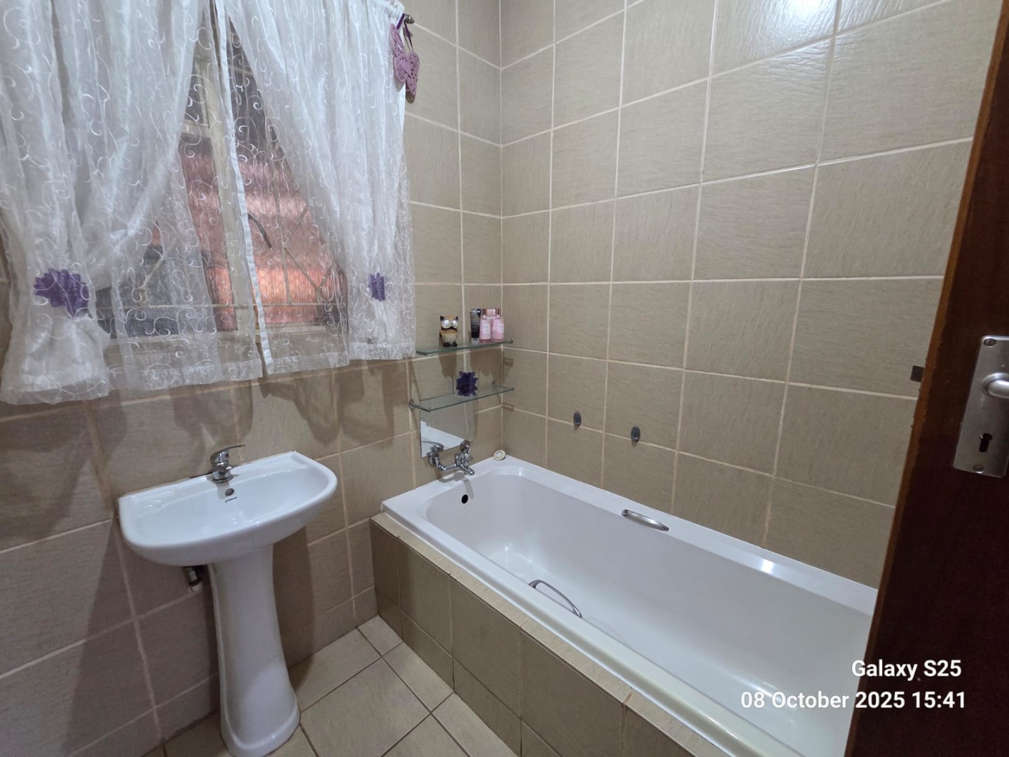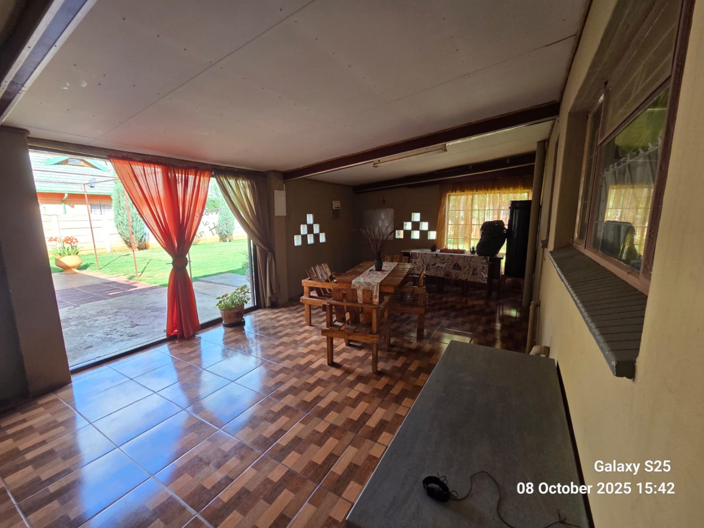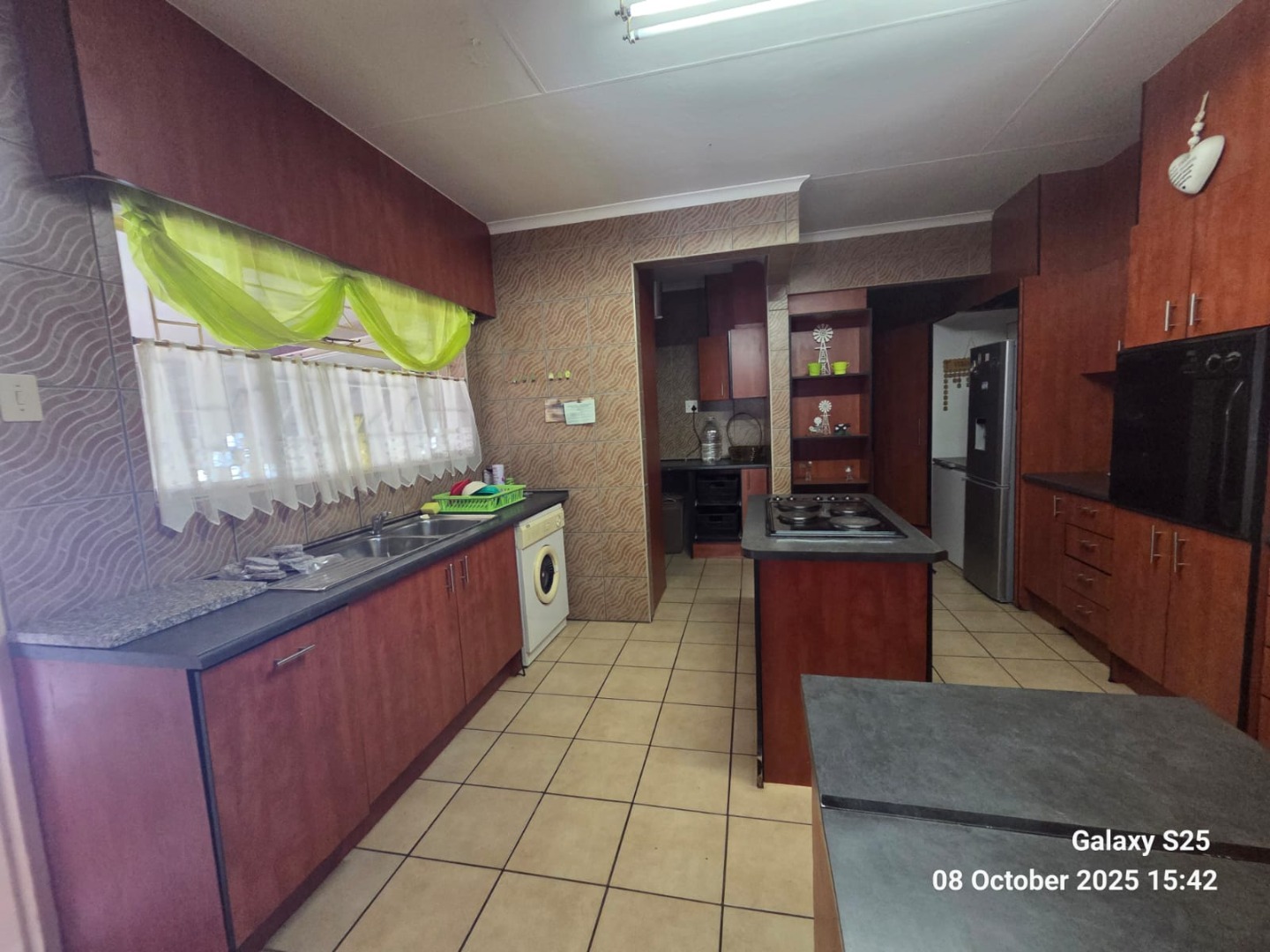 Discover this charming residential property located in the established suburb of Pretoriusrus, Carletonville, South Africa. This single-story home, set on a generous 1034 sqm erf, offers a blend of comfort and practicality for family living. The exterior presents a welcoming kerb appeal with a mix of brick and painted walls, complemented by an established garden featuring mature trees that provide ample shade and privacy. A tiled semi-circular patio area offers an inviting space for outdoor relaxation and entertaining.