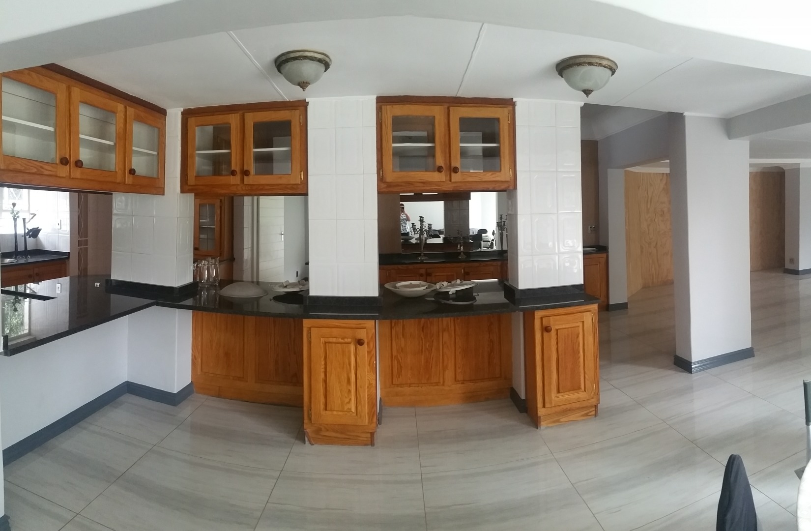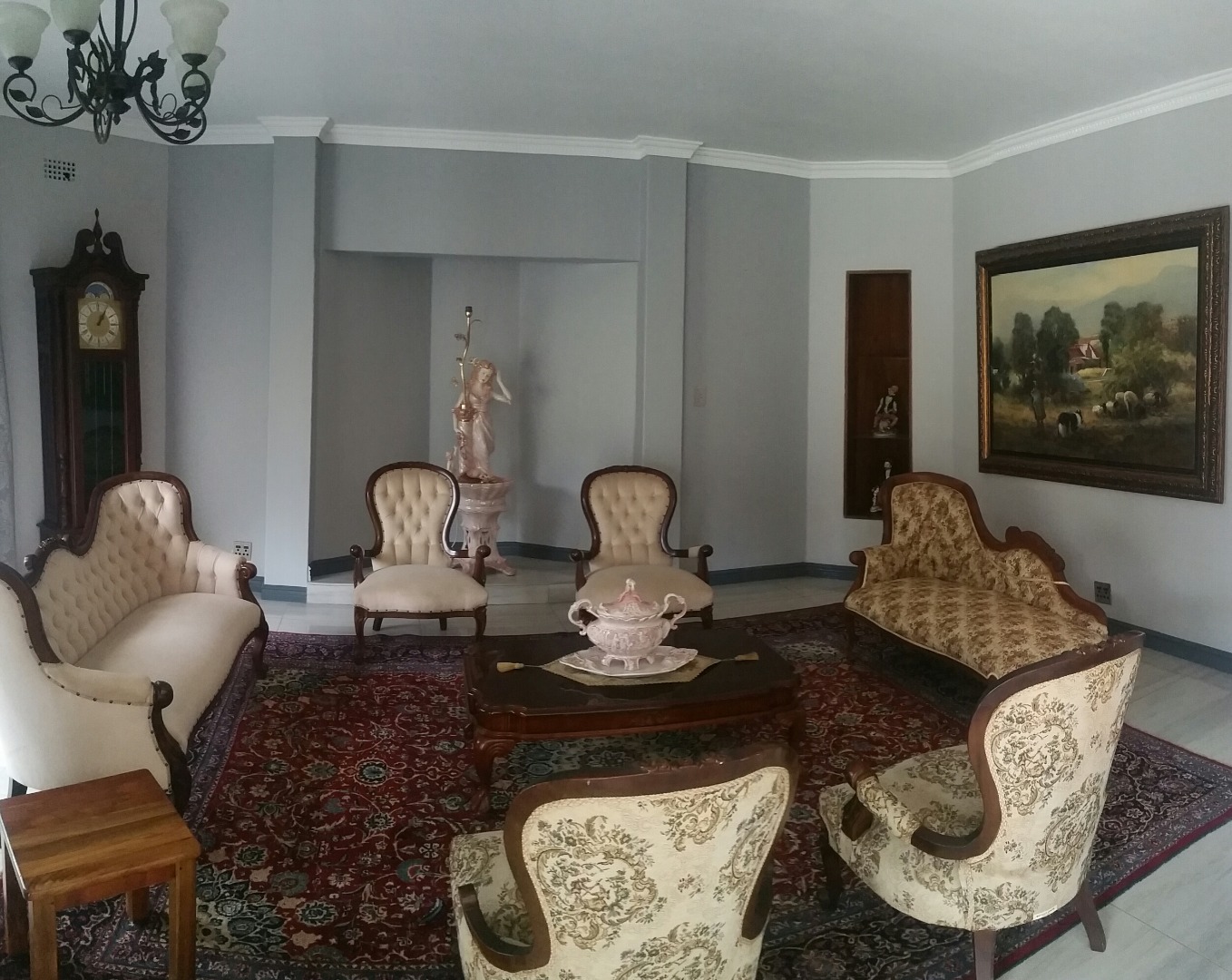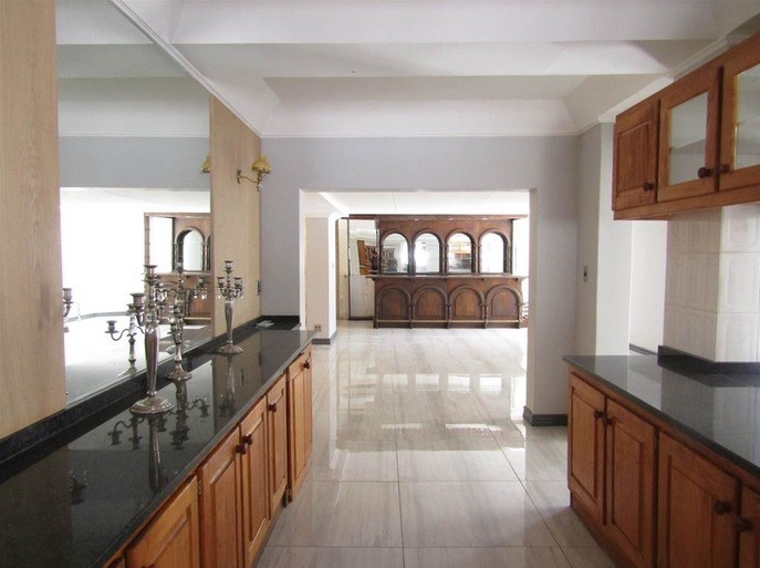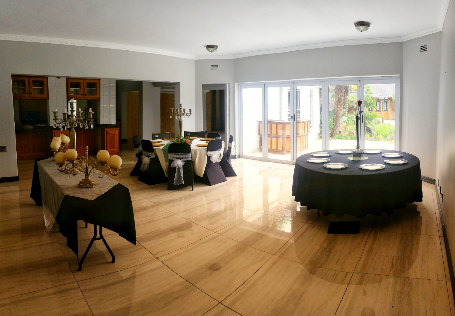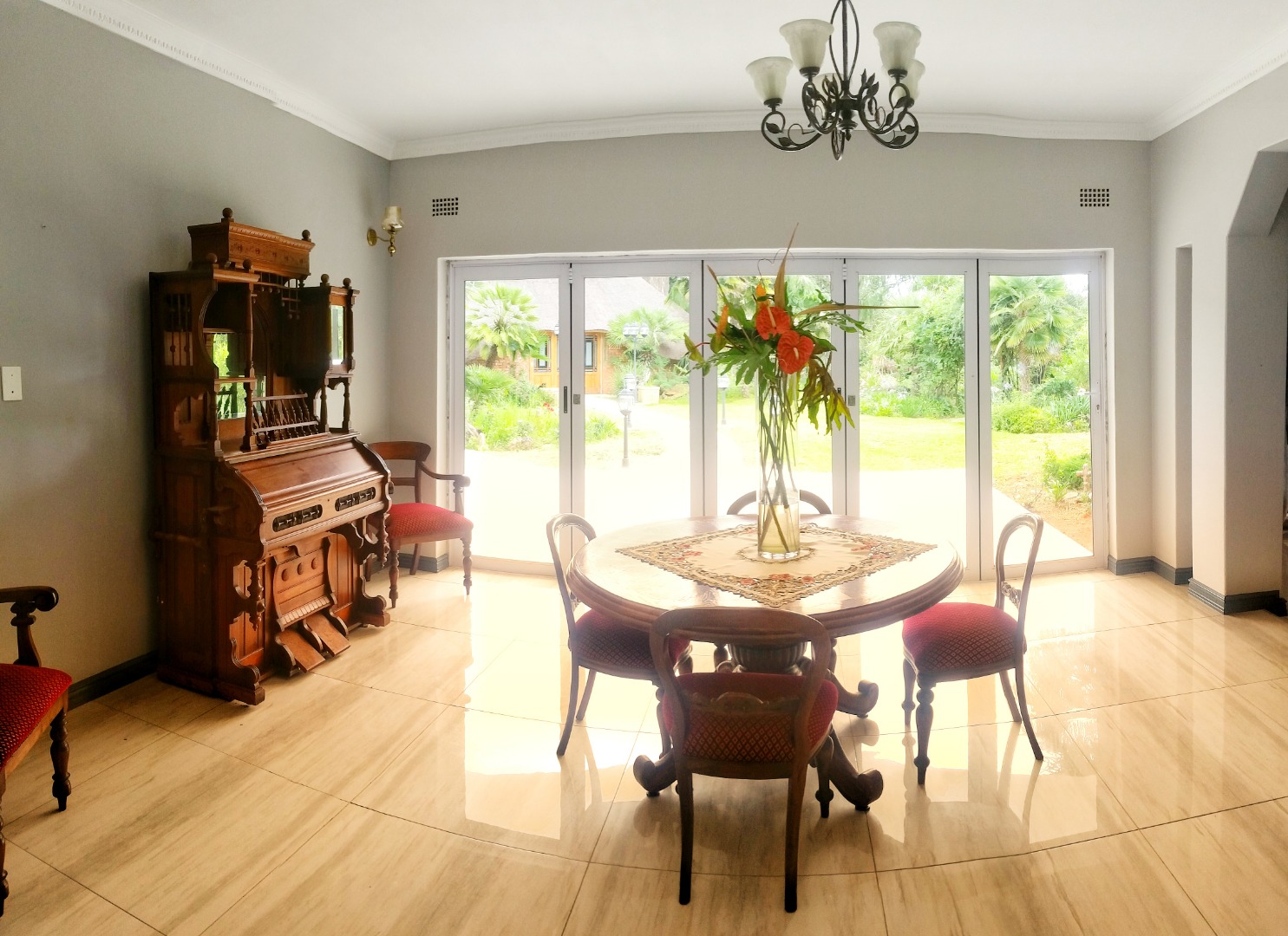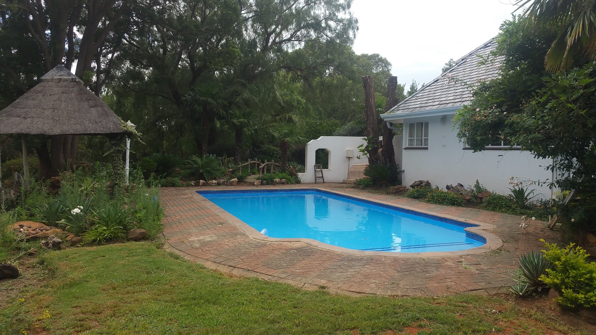 There is a big entrance hall and reception area, a big kitchen with a separate scullery. A Entertainment/TV area with a bar and a lovely living area. The dining room opens up onto a patio with a sparkling pool. There is a big lapa for entertainment with a built-in braai,.