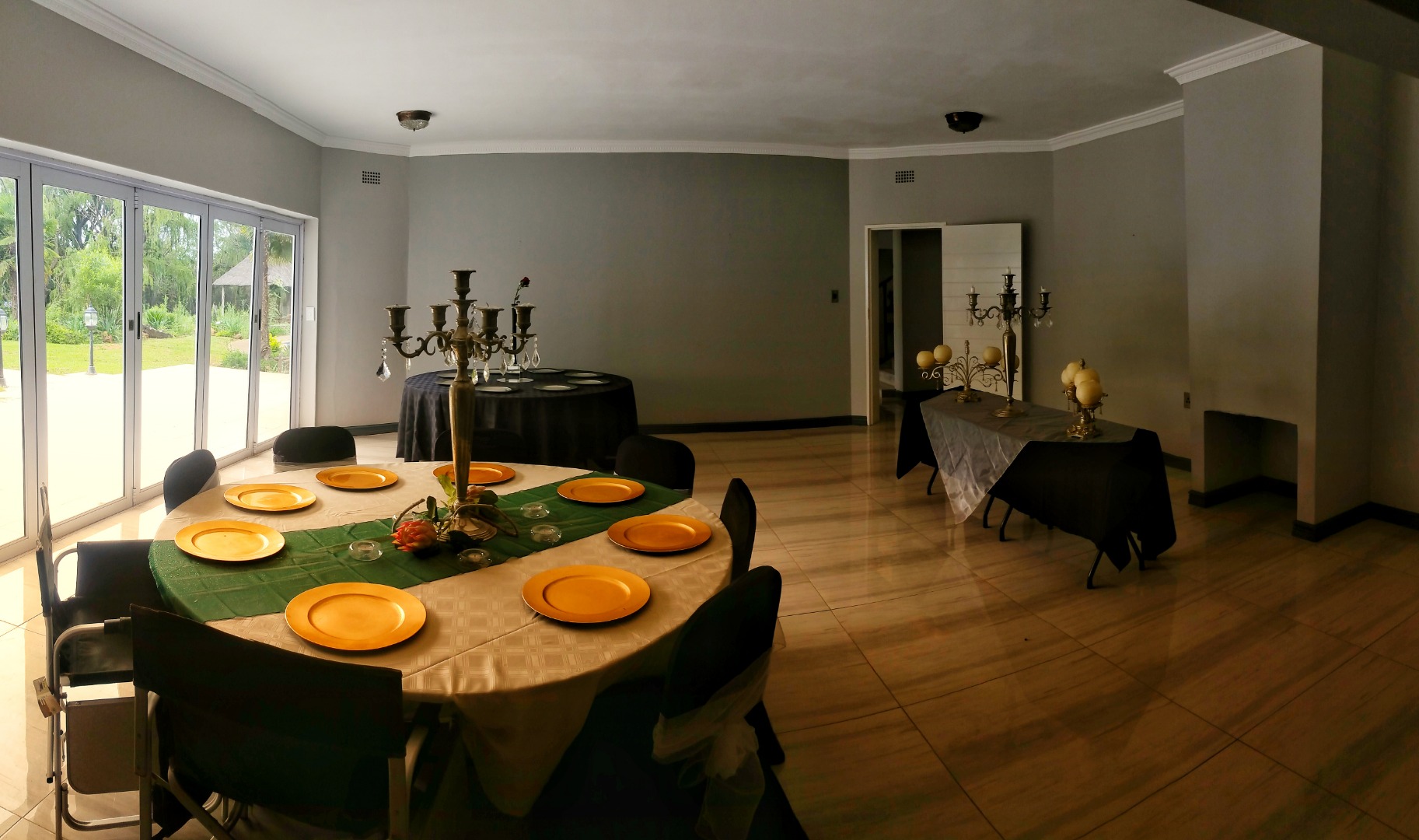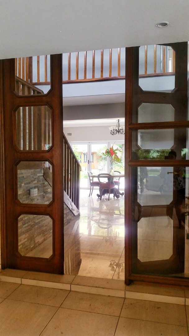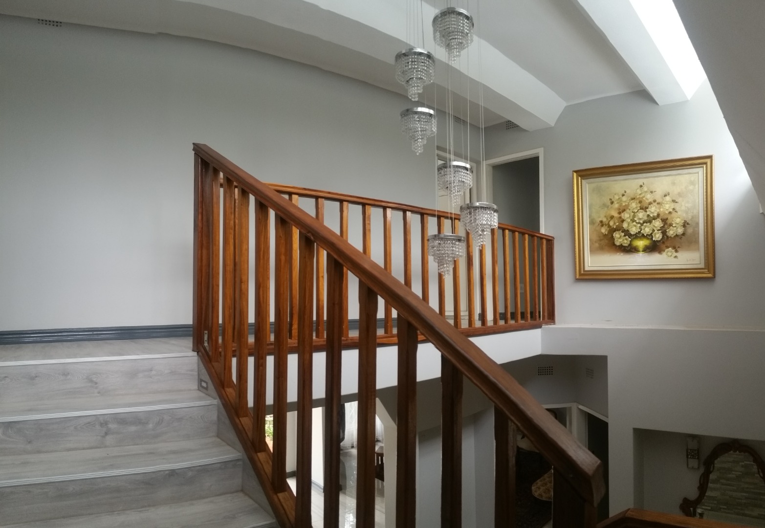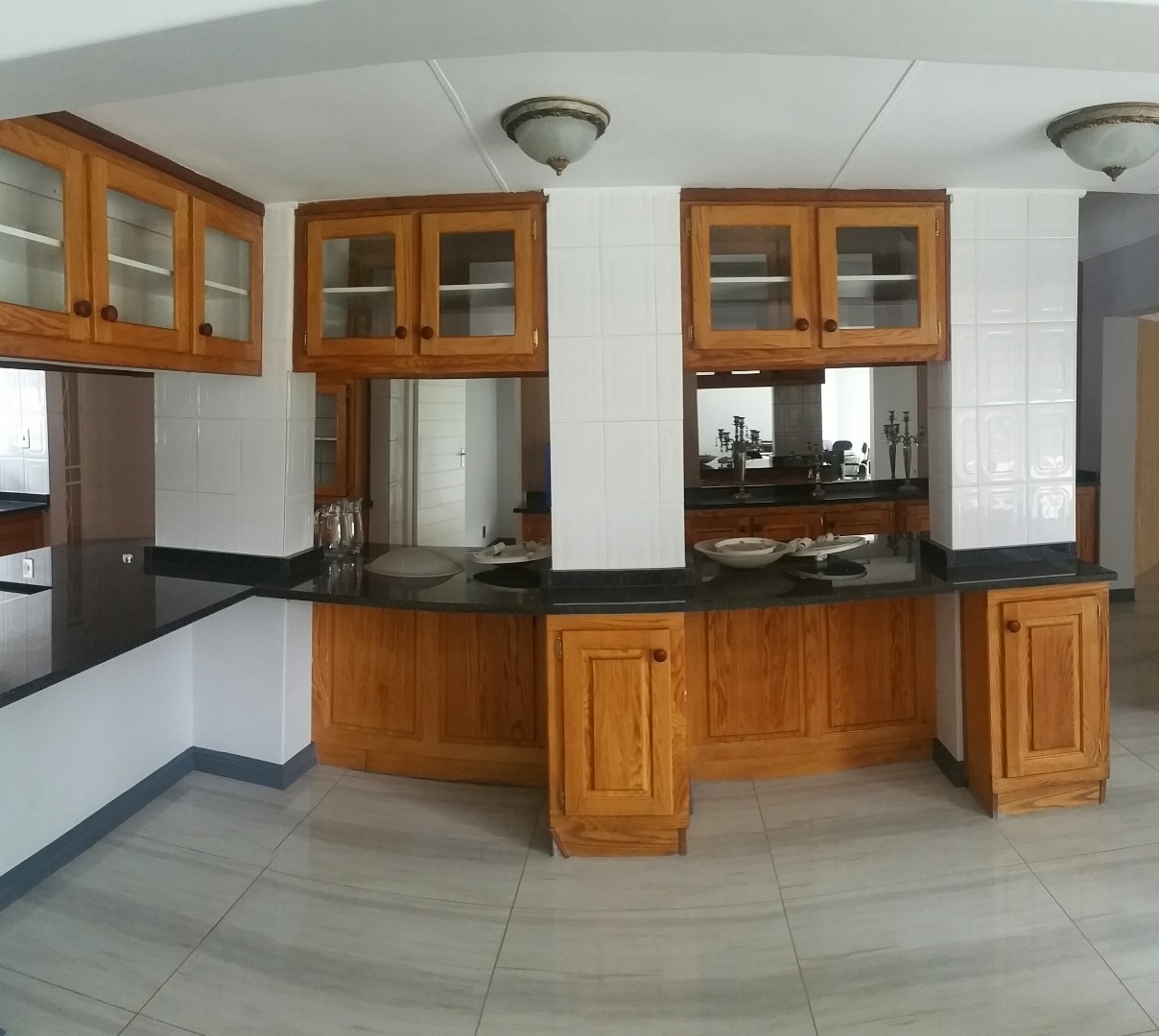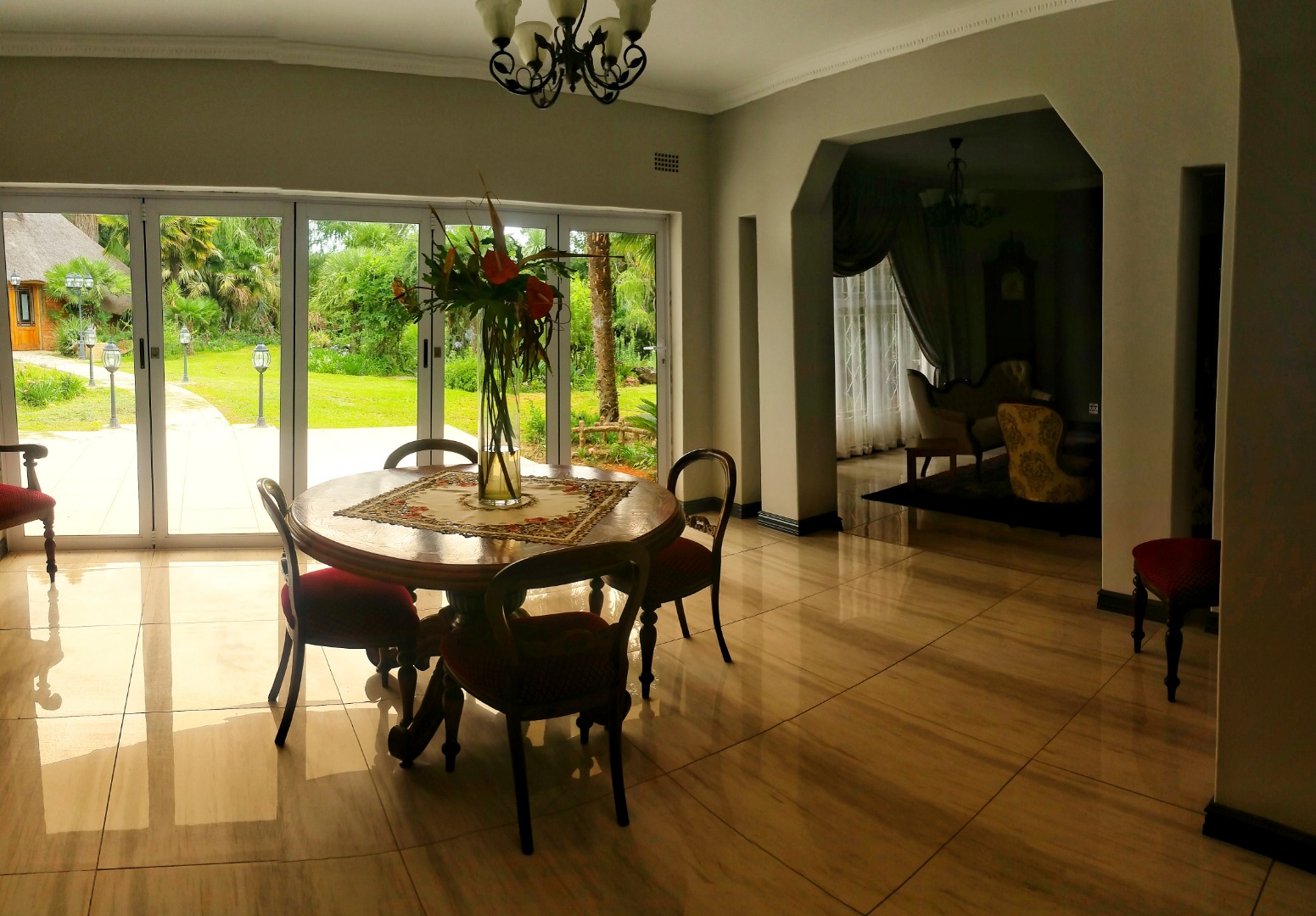 There is a big entrance hall and reception area, a big kitchen with a separate scullery. A Entertainment/TV area with a bar and a lovely living area. The dining room opens up onto a patio with a sparkling pool. There is a big lapa for entertainment with a built-in braai,.